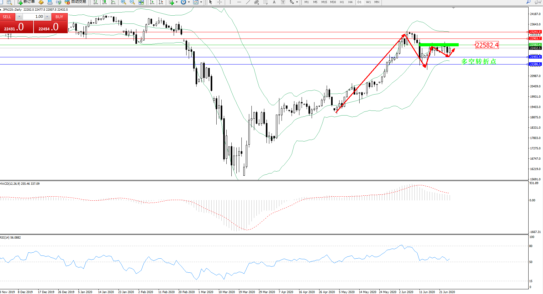 日经225指数625日(周四)收盘下跌264.82点,跌幅1.18%,报22269.50点。日本央行:截至3月底,日本央行持有44.2%的日本政府债券。外资持有日本政府债券的比例为12.9%。据日本时事通讯社:东京今日新增48例新冠肺炎确诊病例。日内尽管避险情绪升温,但在二次疫情压力上升的背景下,投资者依旧青睐美元,风险资产普遍承压,流动性风险担忧可能再度回归。美股三大股指周三录得近两周来最大单日百分比跌幅,因美国冠状病毒病例激增加剧了市场对政府实施新一轮封锁和经济损失加重的担忧。纳斯达克指数结束了此前连涨八天的走势,这是自201912月以来的持续时间最长的升势,从周二本月第五次刷新的收盘纪录高位回落。