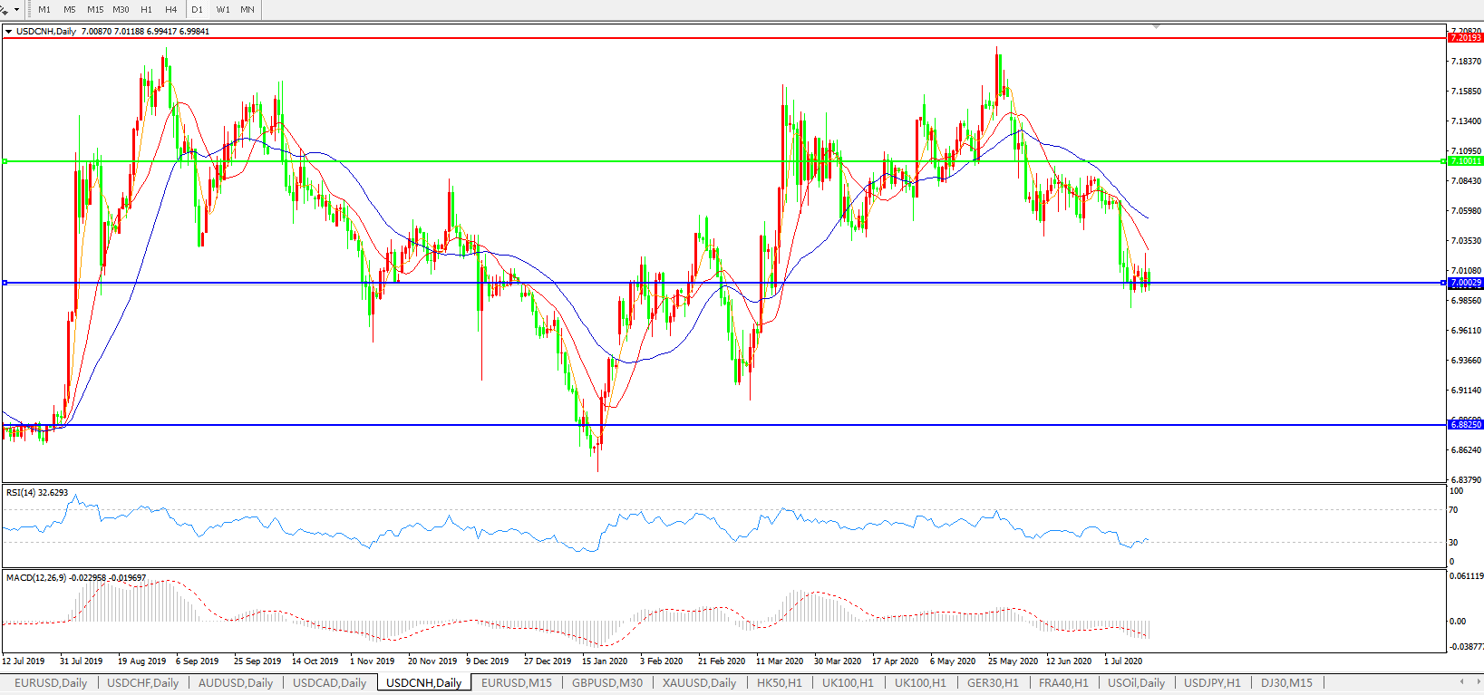 美元兑人民币USDCNH    日线图: