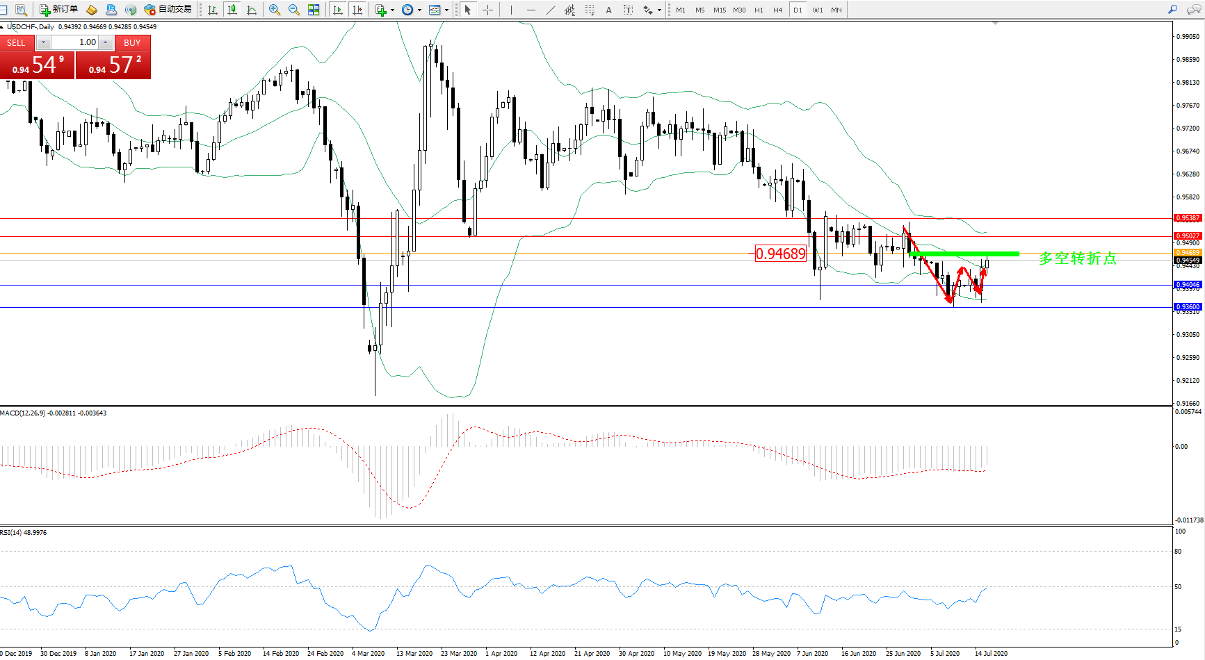 交易策略:0.94689下方看跌,目标0.940460.93600