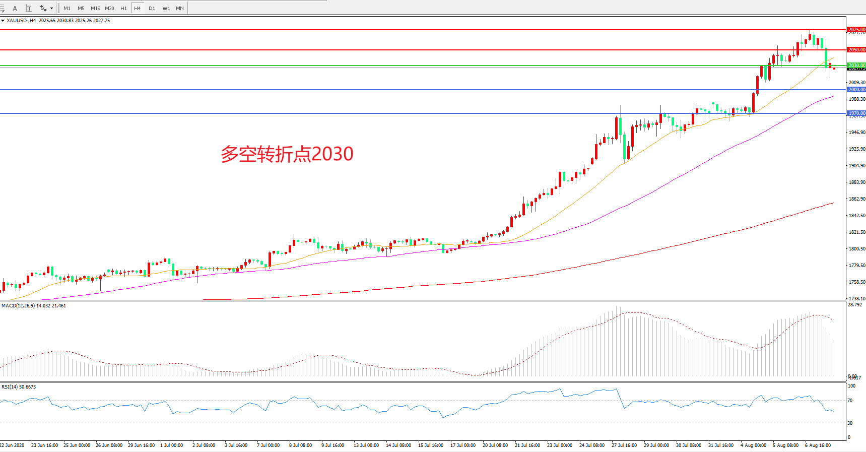 交易策略:在2030.00之下看跌,目标2000.00   1970.00