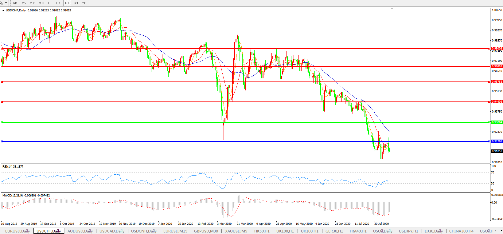 交易策略:0.9300下方看跌,目标0.9170、0.9000