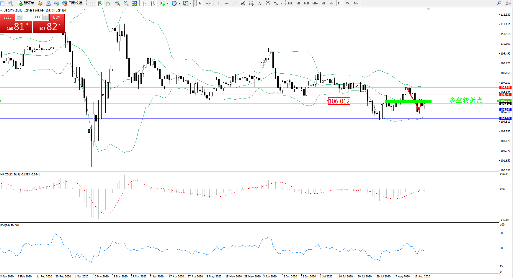 .交易策略:106.012下方看跌,目标105.367、104.721