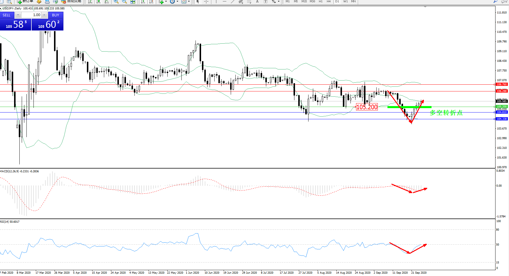 多空转折点:105.200