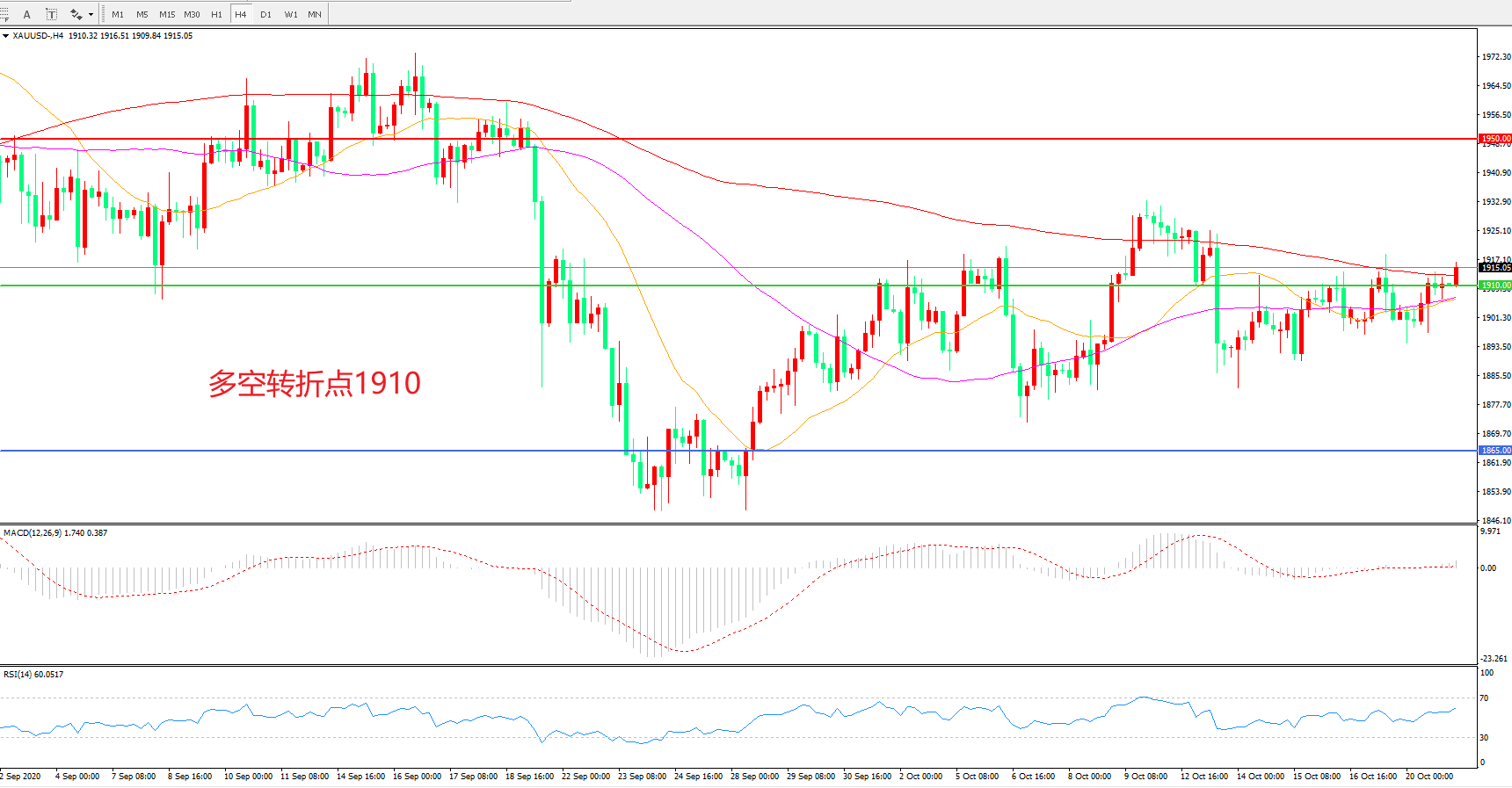 交易策略:在1910.00之上看涨,目标1950.00   1980.00