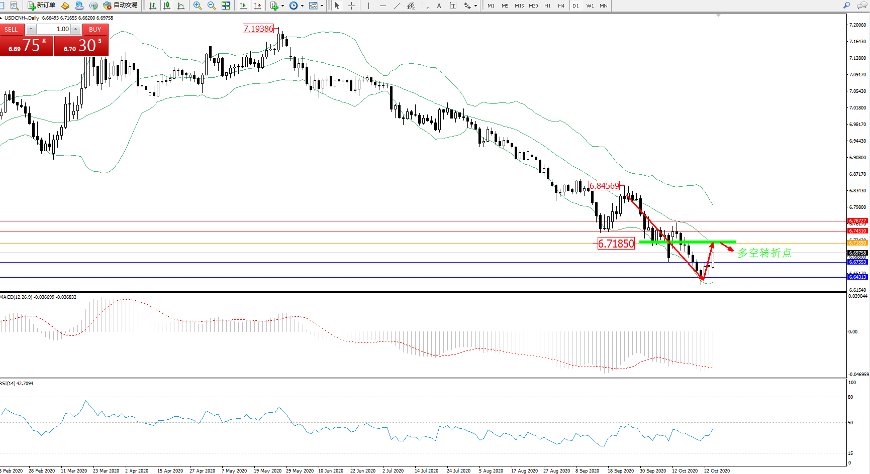 备选策略:6.71850上方看涨,目标6.74510、6.76727