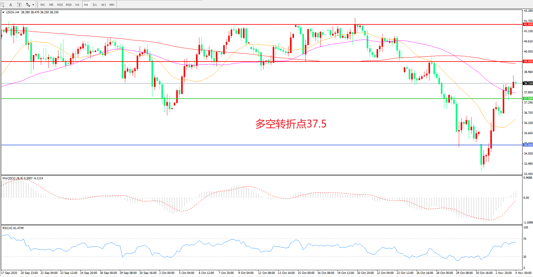 多空转折点:37.50
