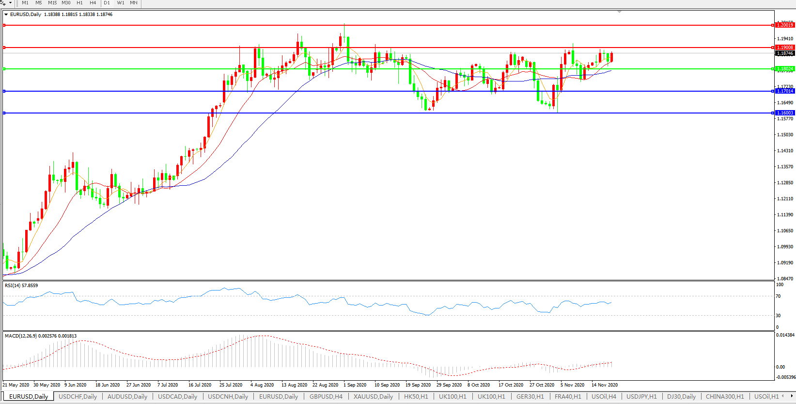交易策略:1.1800上方看涨,目标1.1900、1.2000