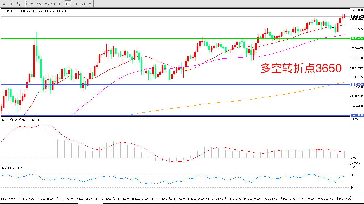 12月8日),美国财长姆努钦称,他和佩洛西交谈过,他交给佩洛西一份9160亿美元规模的救助方案。这份方案包括资助州和地方政府,给予企业和学校强有力的免责保护这是特朗普政府大选以来首次试图打破新刺激谈判僵局的动向。标普500受到提振大幅上行收报3709.50此外美国政府关门的威胁都已经迫在眉睫,若到本周五还没有新的支出议案批准,本周六联邦政府就将因预算资金告罄而被迫停摆。