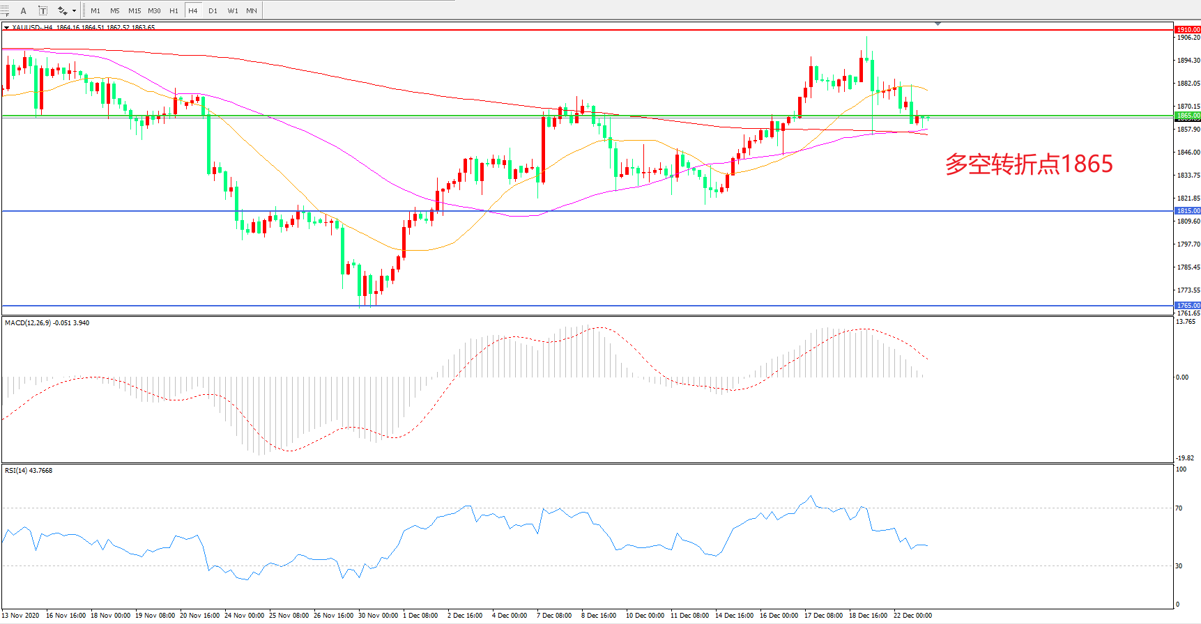周二(12月22日),美国新一轮刺激方案落地在即,英国却出现新冠的变种病毒,美元指数进一步上行,现货黄金承压回落,收报1862.73美元/盎司。短期需警惕圣诞假期来临,海外休市导致避险教育偏向于美元而对金价造成的扰动,但金价整体不会大幅下挫,建议多头继续持有,继续坚定看涨金银。