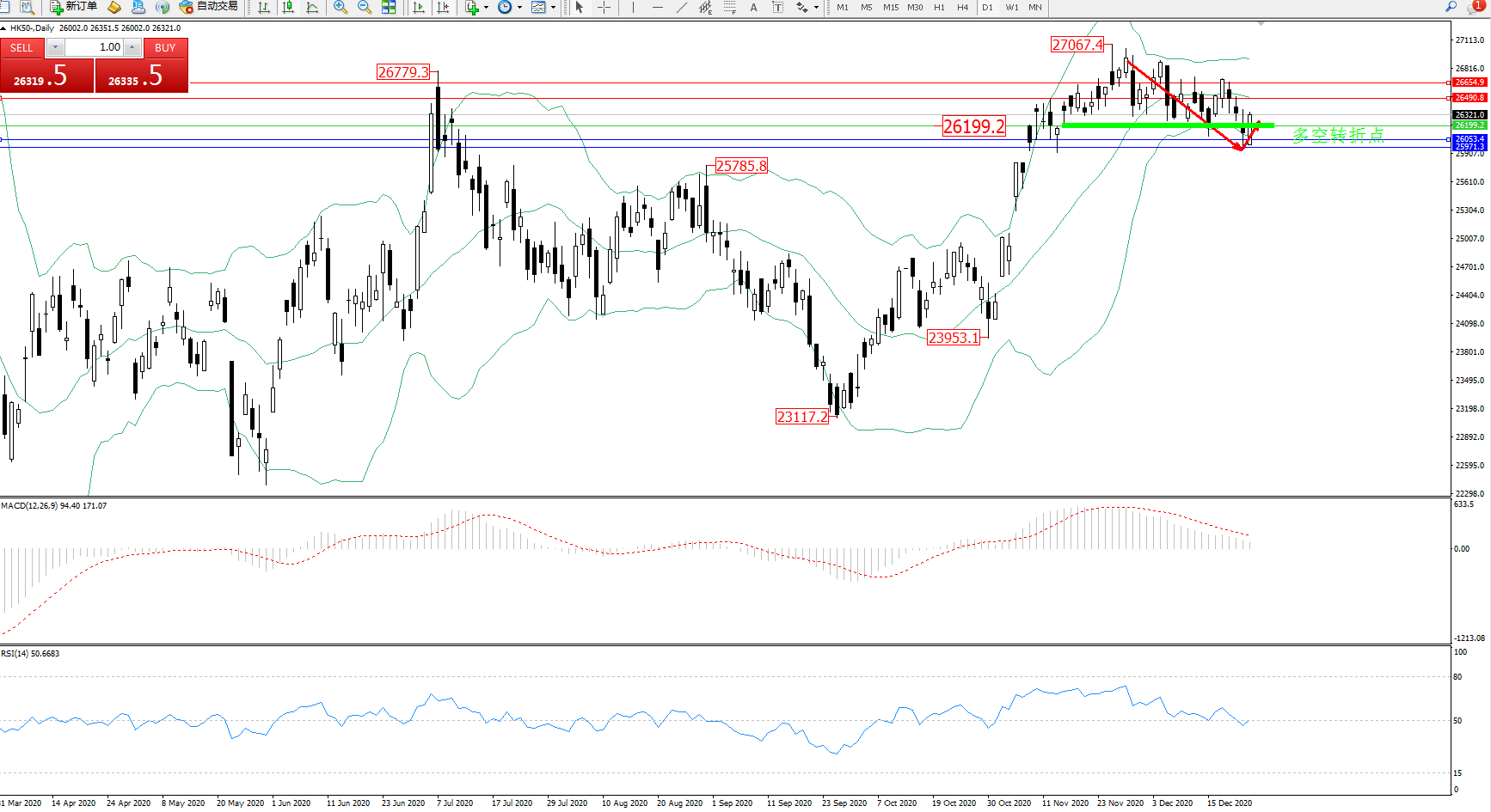 香港恒生指数12月23日(周三)收盘上涨223.85点,涨幅0.86%,报26343.1点;港股主要指数均收涨,市场整体情绪较佳,个股普遍向好。大型科技股集体强势,恒生科技指数大幅收涨2.92%。大型科技股小米劲升7.6%,市值超8000亿港元,京东、美团皆走高。惟昨日领涨的水务股回调,银行股继续弱势,物管股、医药股走低明显。今日南下资金净流入44.96亿港元,大市成交额为1291.54亿港元。圣诞假期来临,根据港交所公告,12月24日(周四)港股下午休市,据中国评论通讯社,香港卫生防护中心公布,今日新增53宗新冠肺炎确诊个案,47宗是本地感染,20宗感染源头不明。主任张竹君公布,卫生署的公共化验所分析确诊病人新冠病毒基因排序方式,对11个英国来港病人样本分析,当中2个样本似乎与英国出现高传染性变种病毒吻合,需要进一步研究。2名病人都是留学生,1位独自回港,1位与同学回港。香港特区政府卫生署卫生防护中心12月23日下午介绍,截至当日0时,香港新增53例新冠肺炎确诊病例,本地感染病例47例,其中包括20例不明感染源头病例,而境外输入病例为6例。截至目前,香港累计报告新冠肺炎确诊病例达8353例。