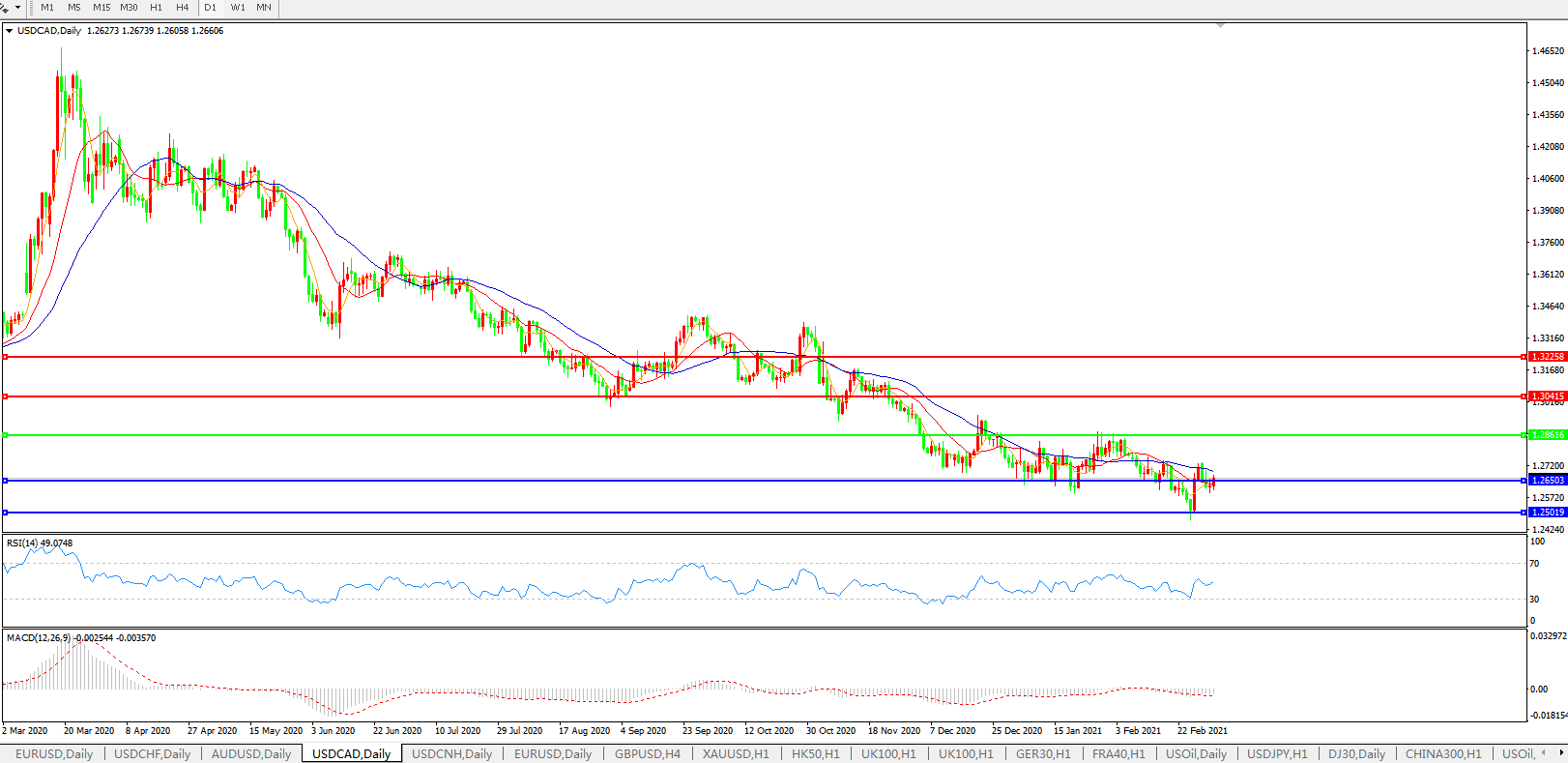 美元兑加元USDCAD 日线图: