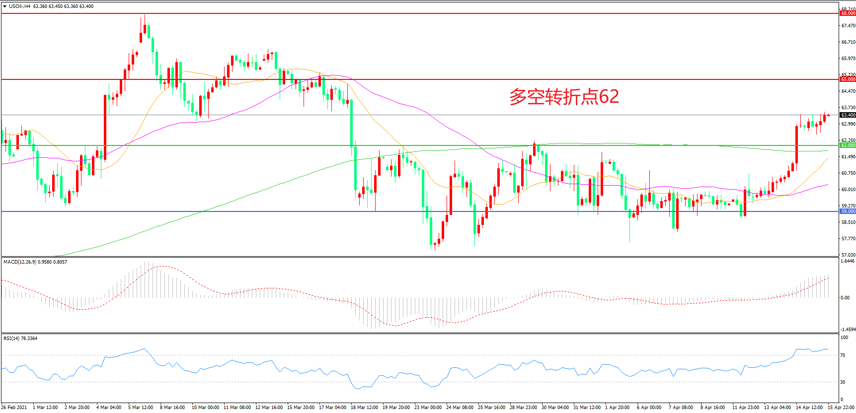 交易策略:在62.00之上看涨,目标65.00    68.00