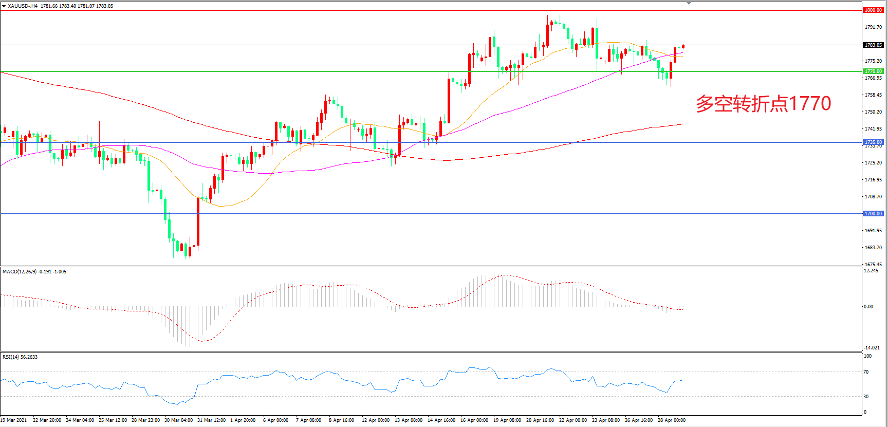 交易策略:在1770.00之上看涨,目标1800.00 1840.00
