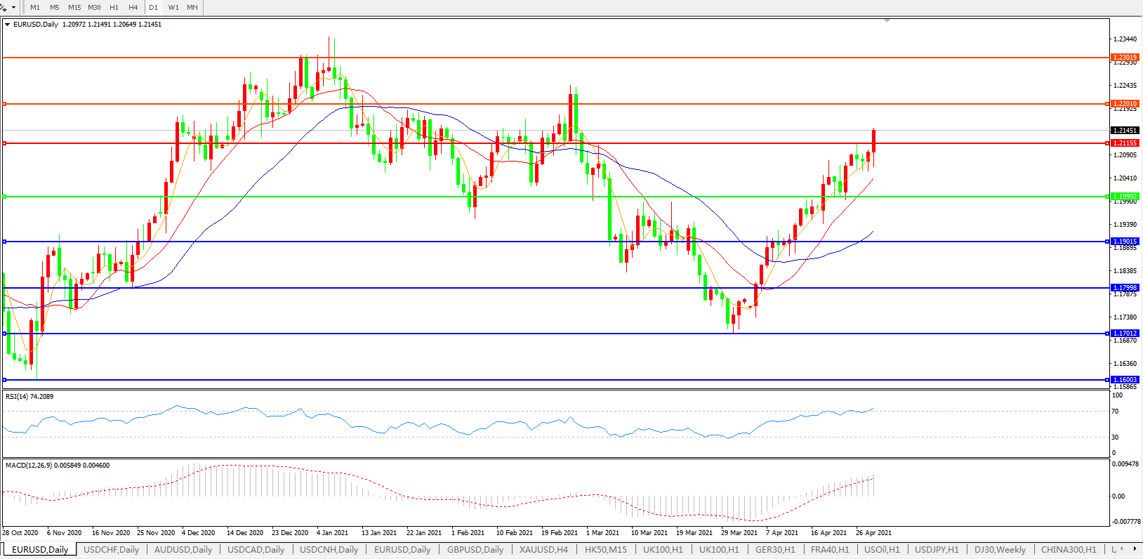 欧元兑美元EURUSD   日线图: