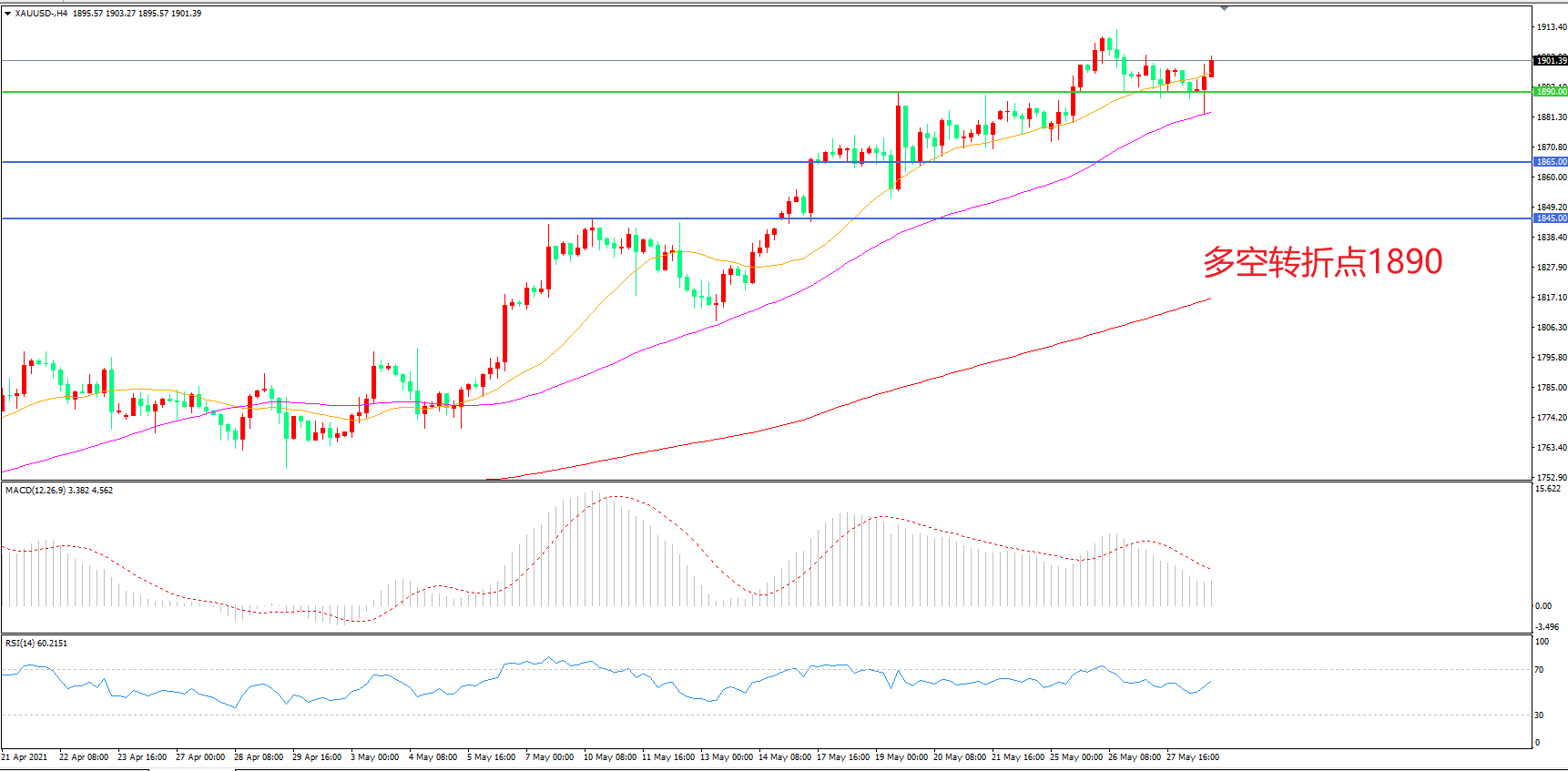 交易策略:在1890.00之上看涨,目标1910.00    1935.00