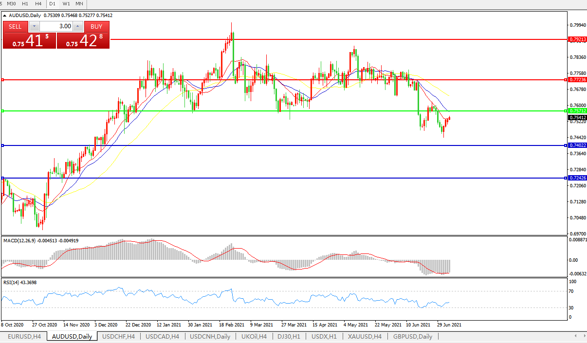 交易策略:0.7570下方看跌,目标0.74000.7240
