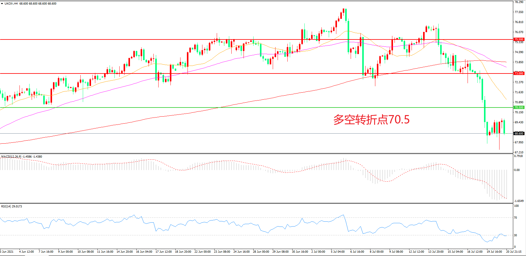交易策略:在70.50之下看跌,目标66.50            62.00