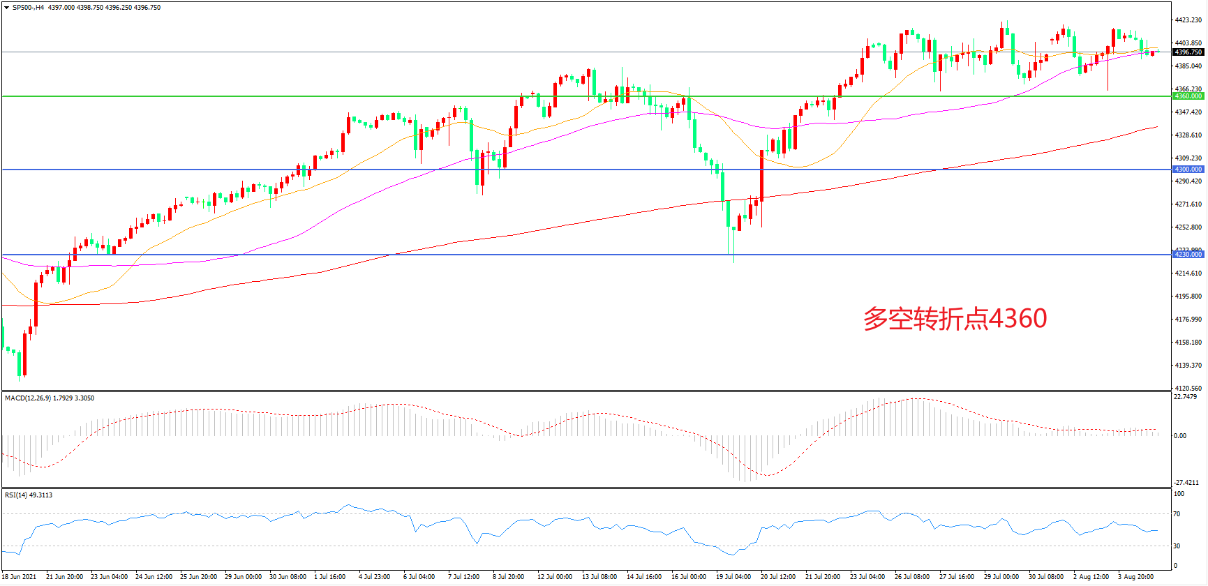 多空转折点:4360.00