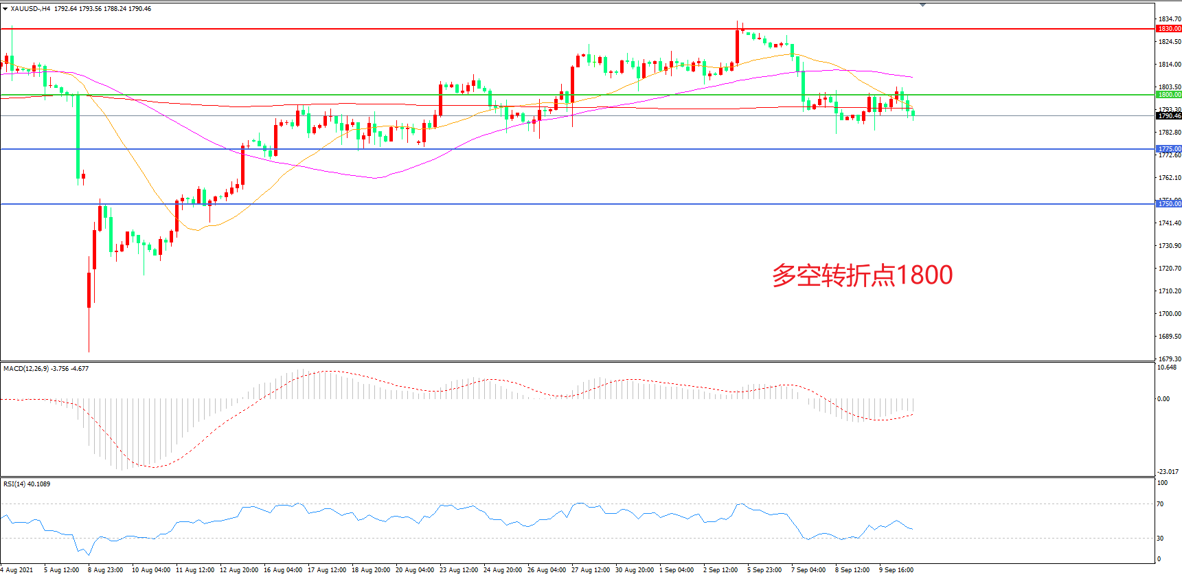 交易策略: 在1800.00之下看跌,目标1775.00 1750.00