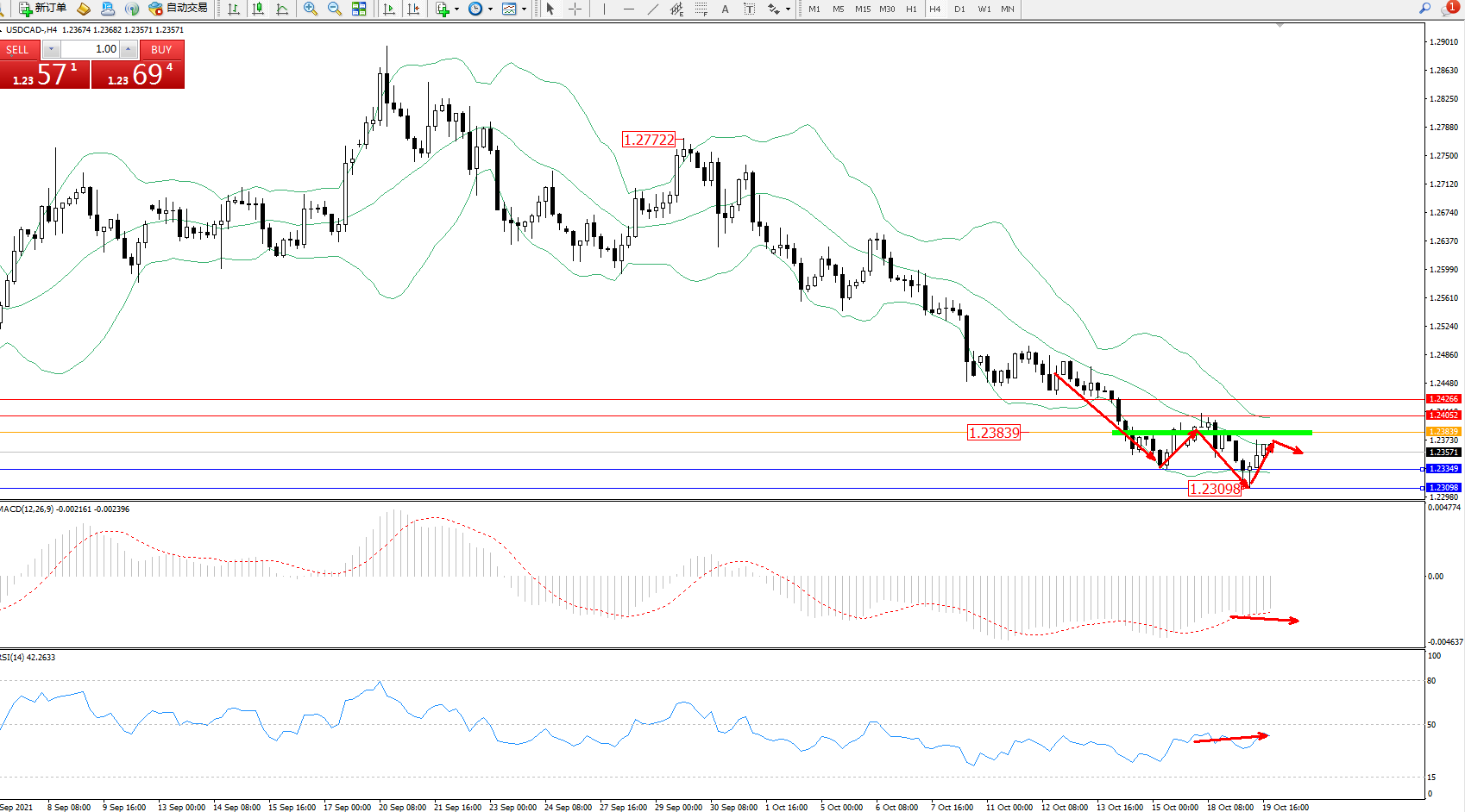 交易策略:1.23839下方看跌,目标1.23349、1.23098