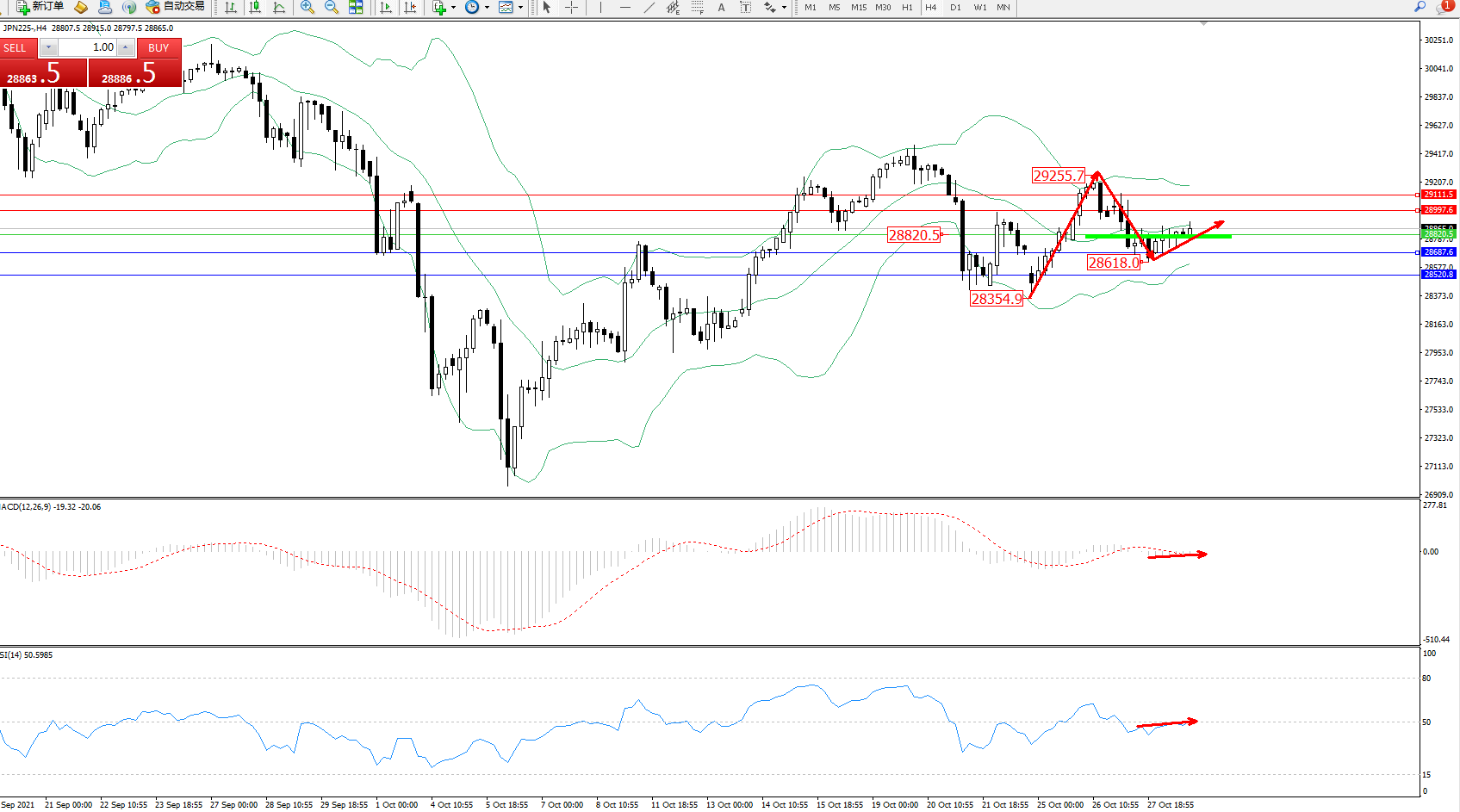 日经指数JPN225——4小时K线图显示: