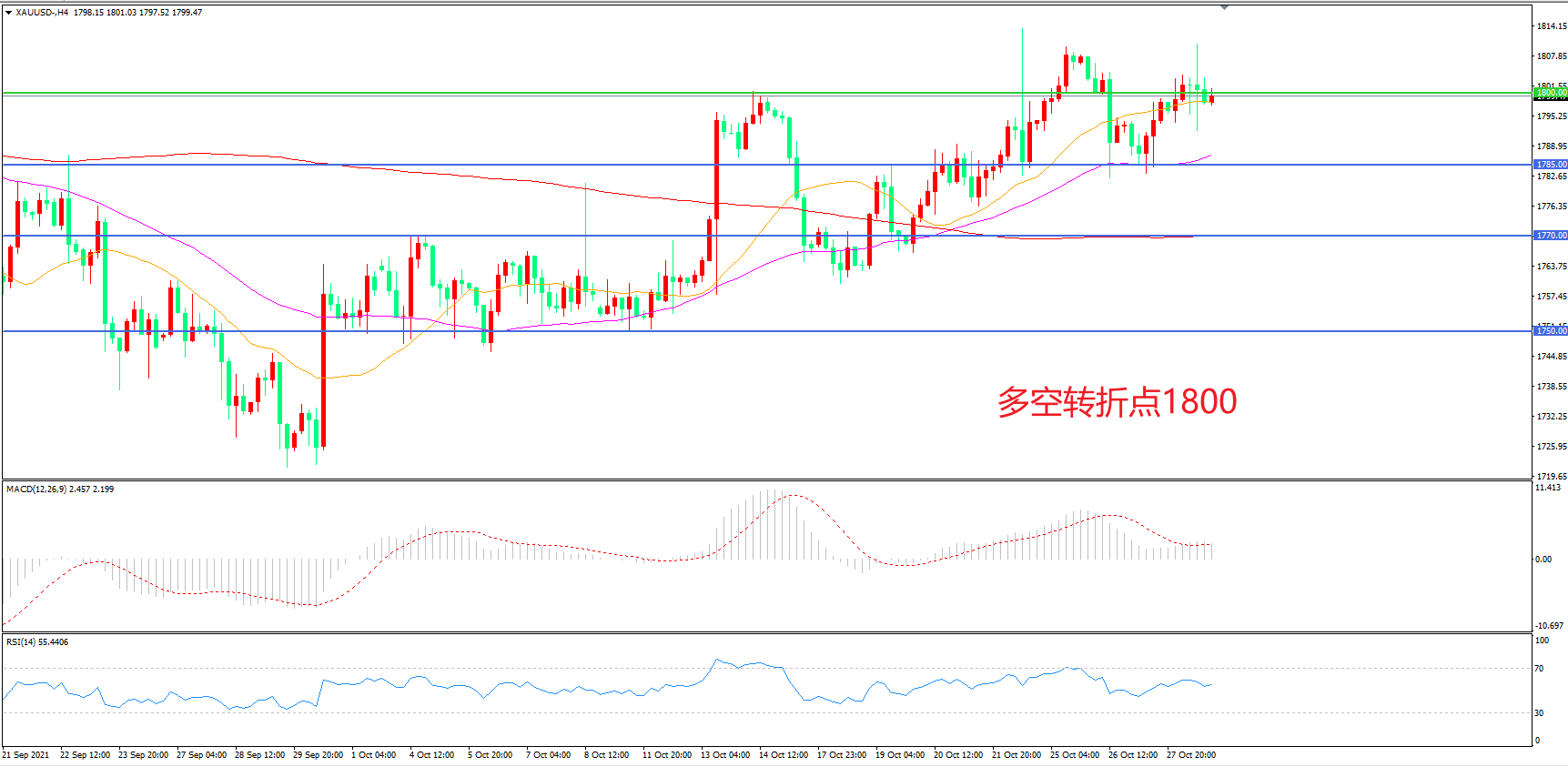 交易策略:在1800.00之上看涨,目标1830.00       1845.00