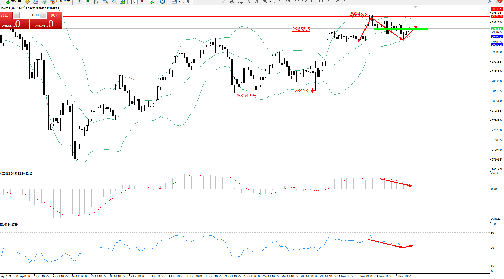 日经指数JPN225——4小时K线图显示: