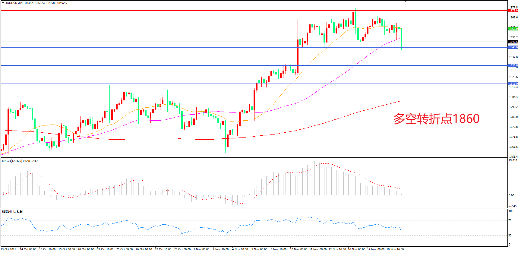 交易策略:在1860.00之下看跌,目标1845.00 1830.00