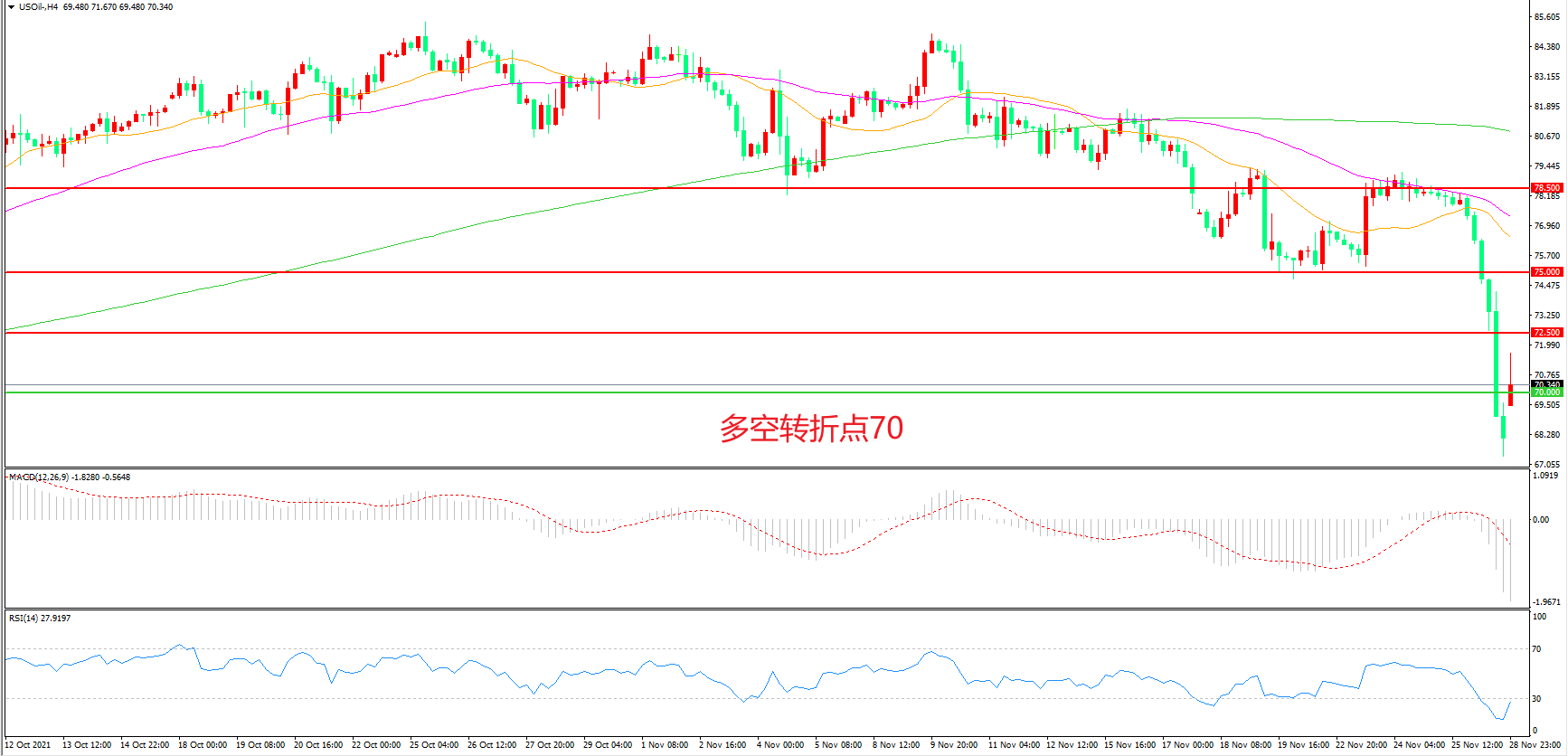 周一(11月29日),原油市场被奥密克戎搞的天翻地覆,拜登称不需要实行停工和封锁一度推动油价反弹,但鲍威尔在美国参议院听证会中强调新冠变体奥密克戎加重美国经济风险和通胀不确定性,美国WTI原油冲高回落,收报70.31美元/桶。从当前的情况以及潜在的因素上来看,新冠病毒变株、伊核协议谈判以及OPEC会议决议都是重大影响因素,油价在本周将在博弈中出现巨幅波动。