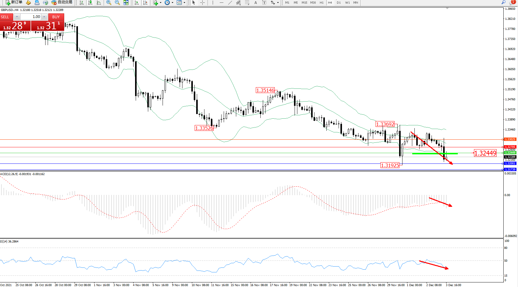 交易策略:1.32449下方看跌,目标1.32001、1.31739