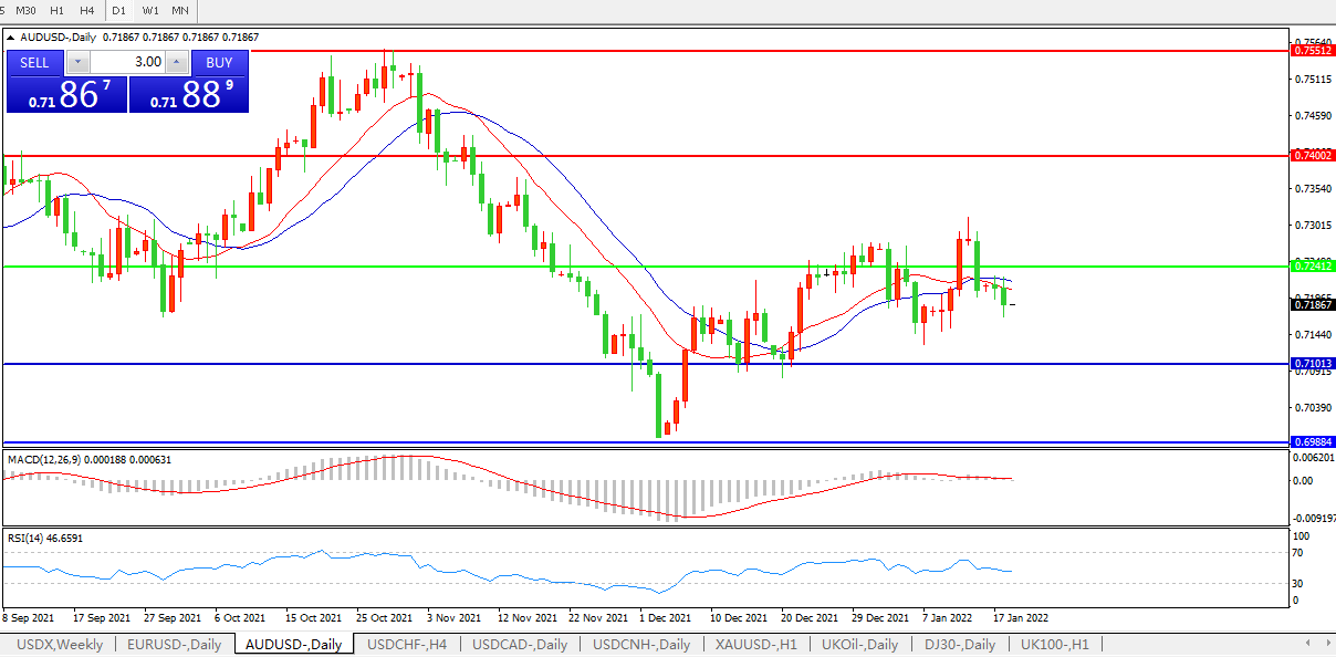 交易策略:0.7240下方看跌,目标0.7100、0.6980