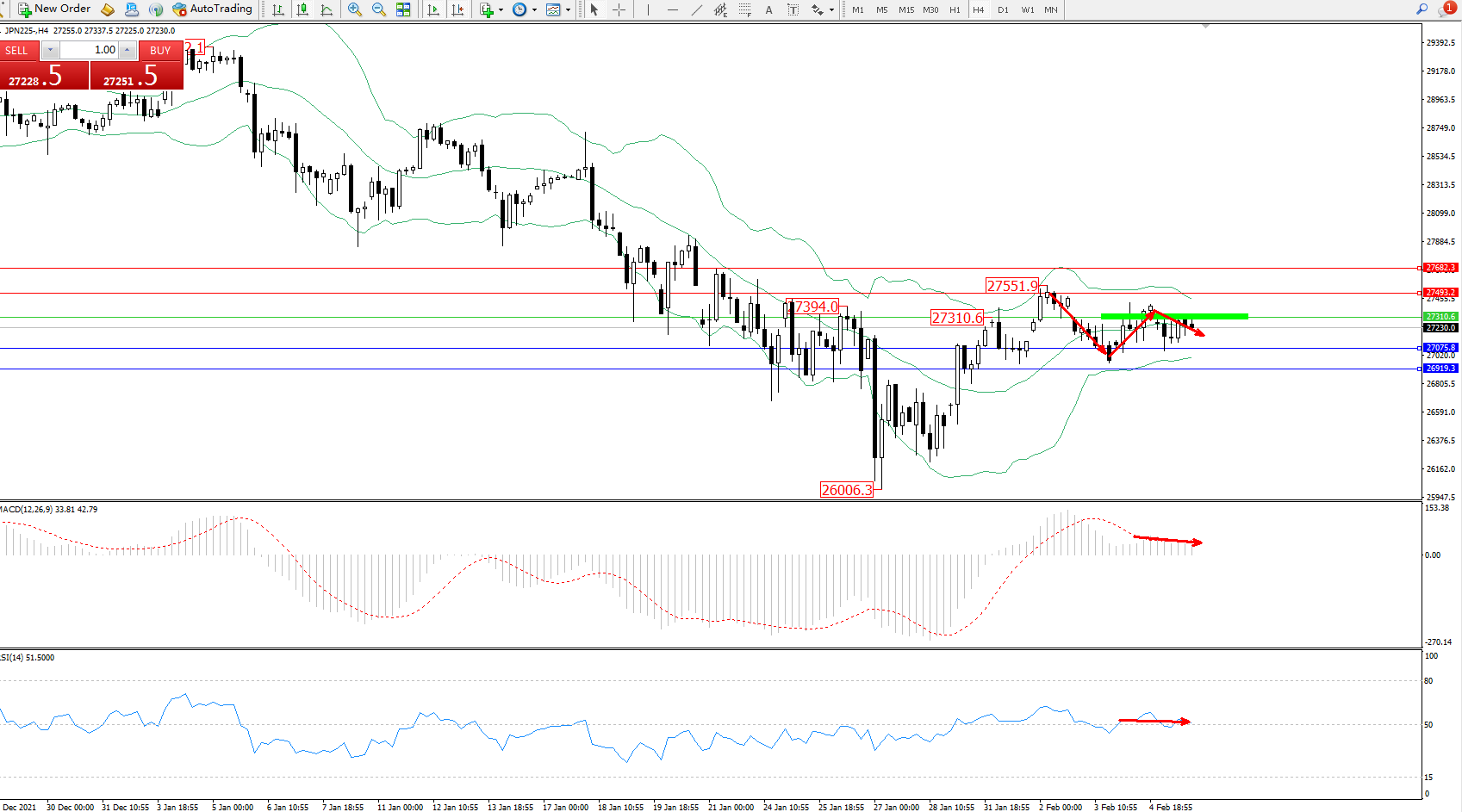 日经指数JPN225——4小时K线图显示: