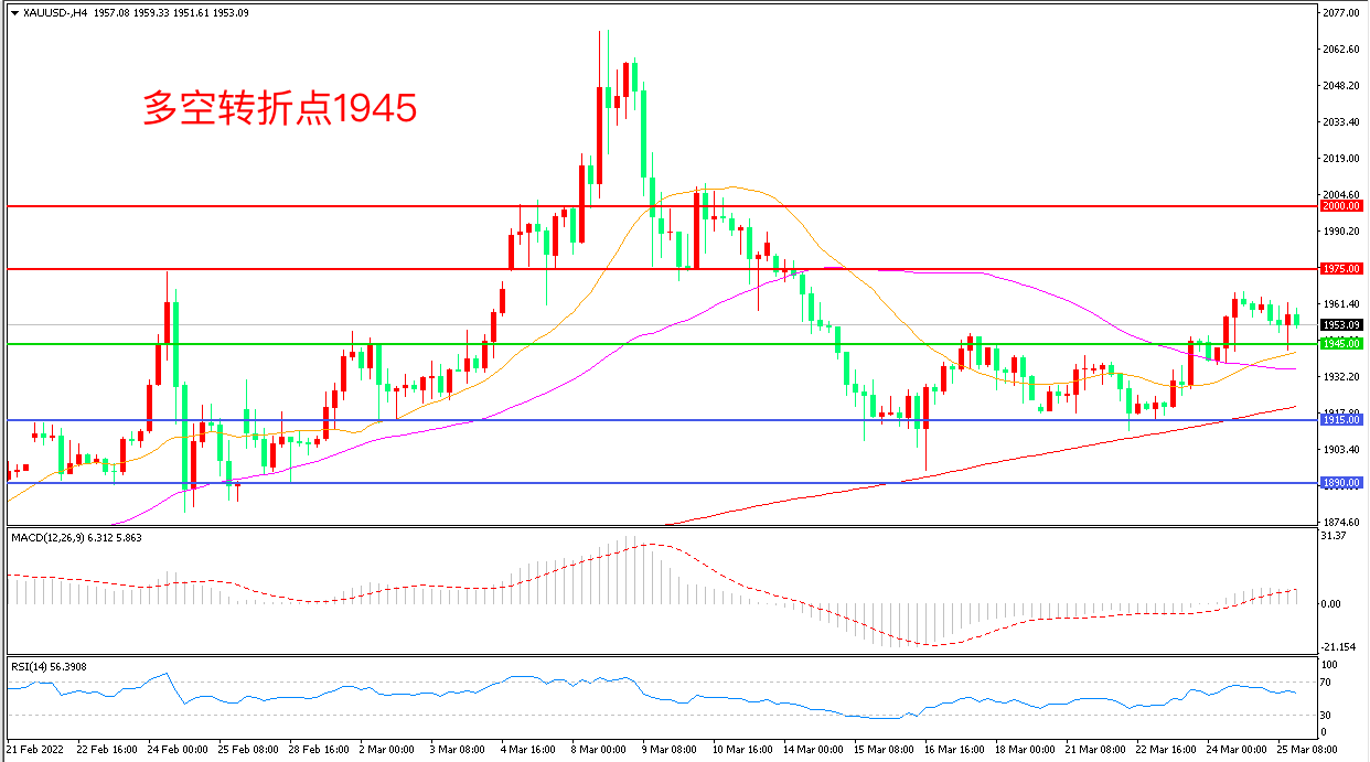 上周五(3月25日),俄罗斯央行宣布开始恢复在内部市场从信贷机构以固定价格购买黄金,现货黄金短线冲高,收报1953.09美元/盎司。短期来看,对乌克兰战争和不断上涨的物价的担忧增强了黄金作为避险和通胀对冲工具的吸引力,但在美联储鹰声不断的背景下,黄金延续区间震荡概率较大。