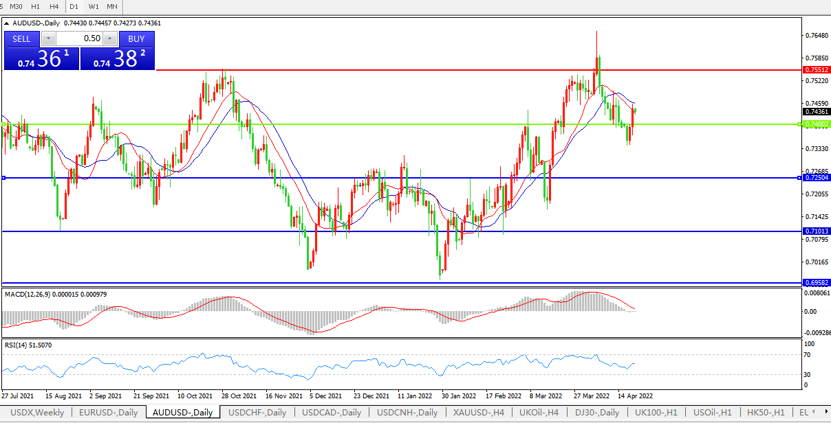 备选策略:0.7400上方看涨,目标0.7550、0.7650