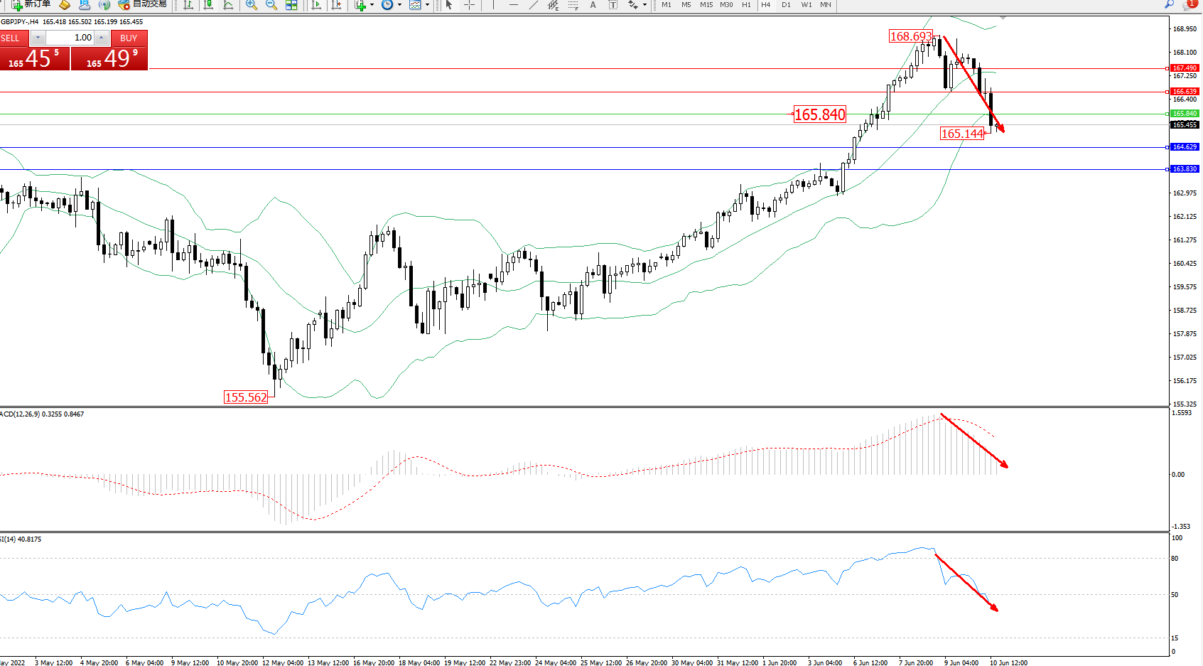 交易策略:165.840下方看跌,目标164.629、163.830