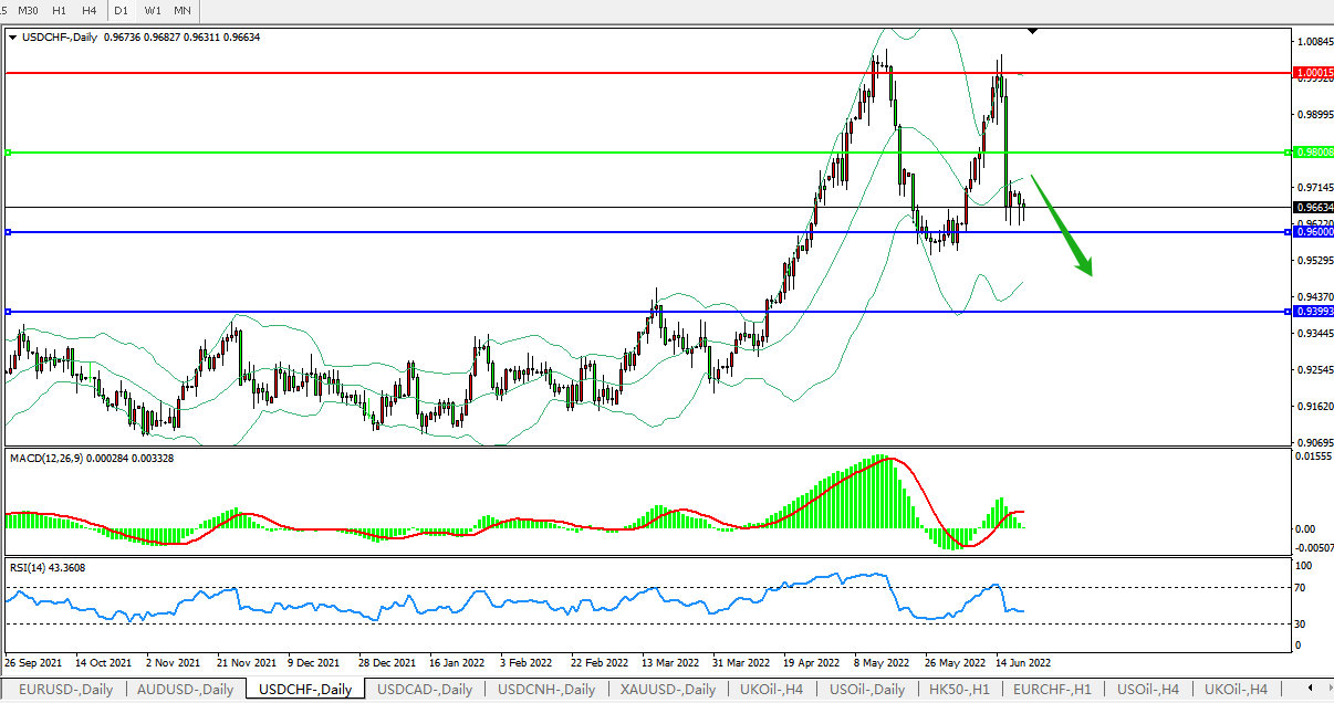 备选策略:0.9800下方看跌,目标0.9600、0.9400