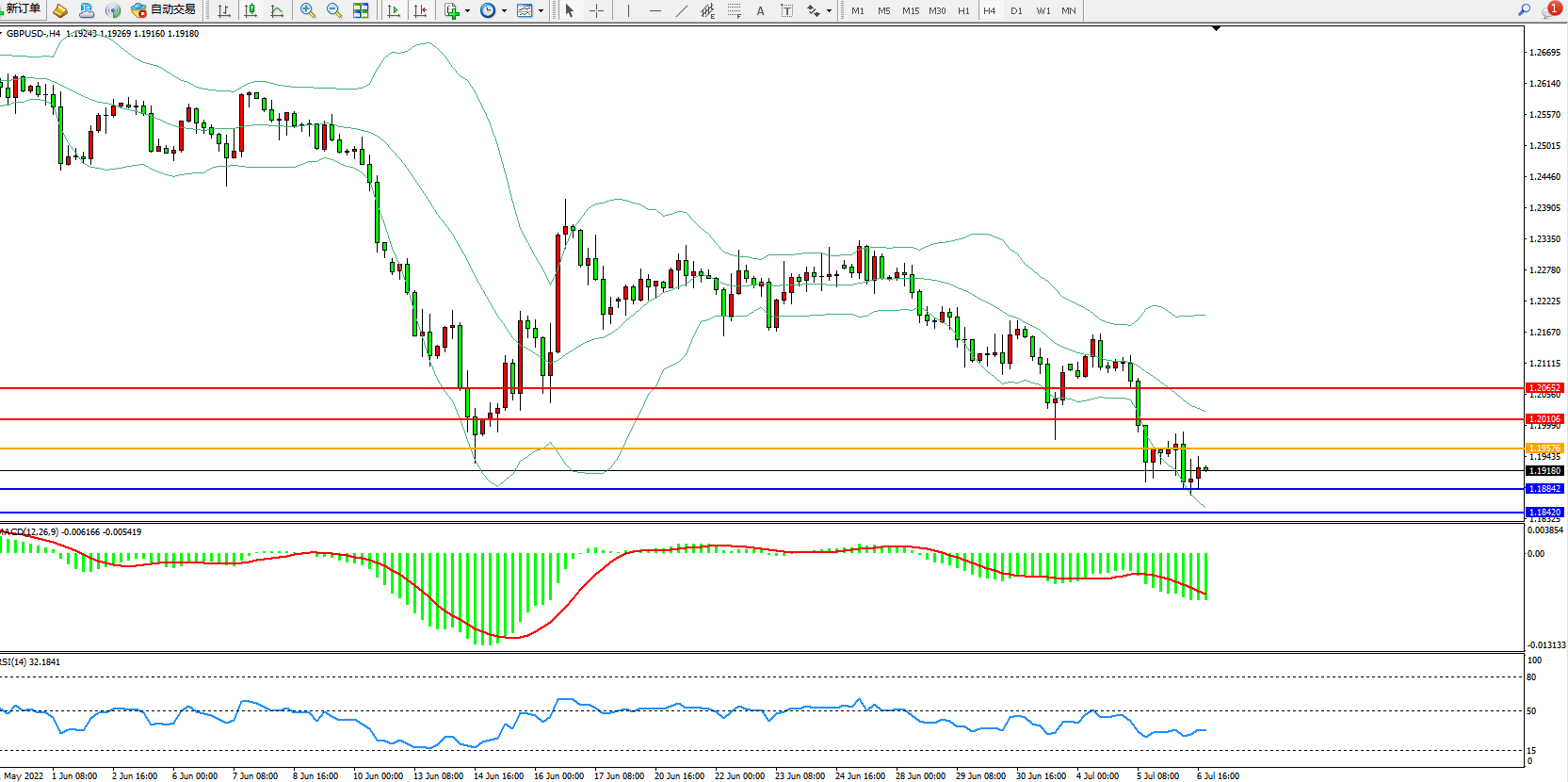 英镑美元GBPUSD ——4小时K线图显示: