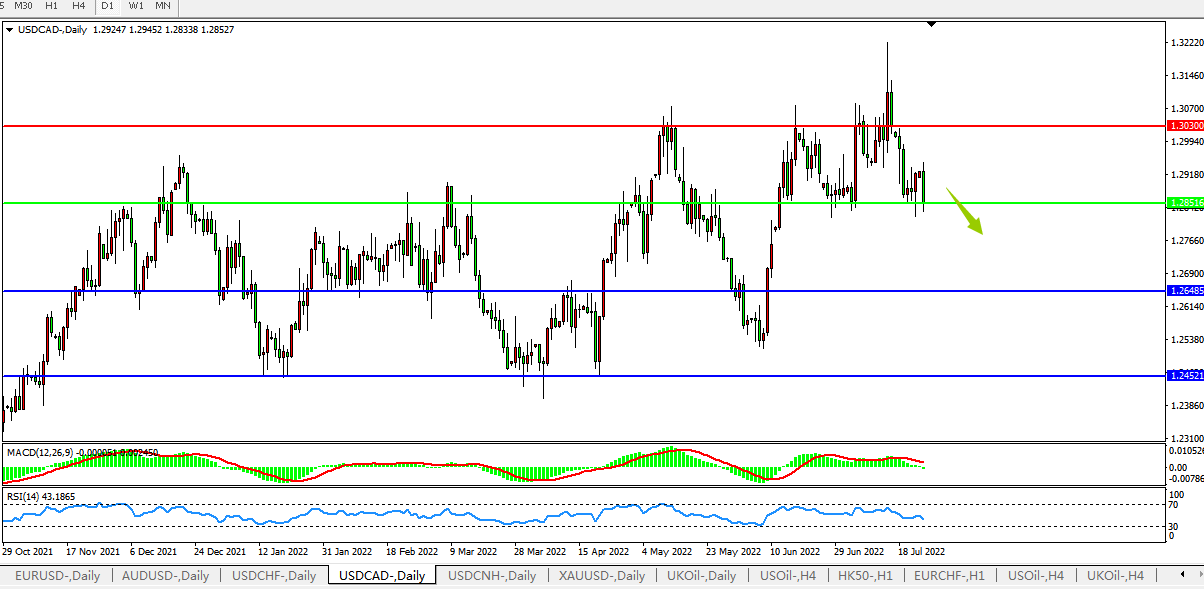 USDCAD:1.2850支撑破败 USDCAD  CADJPY