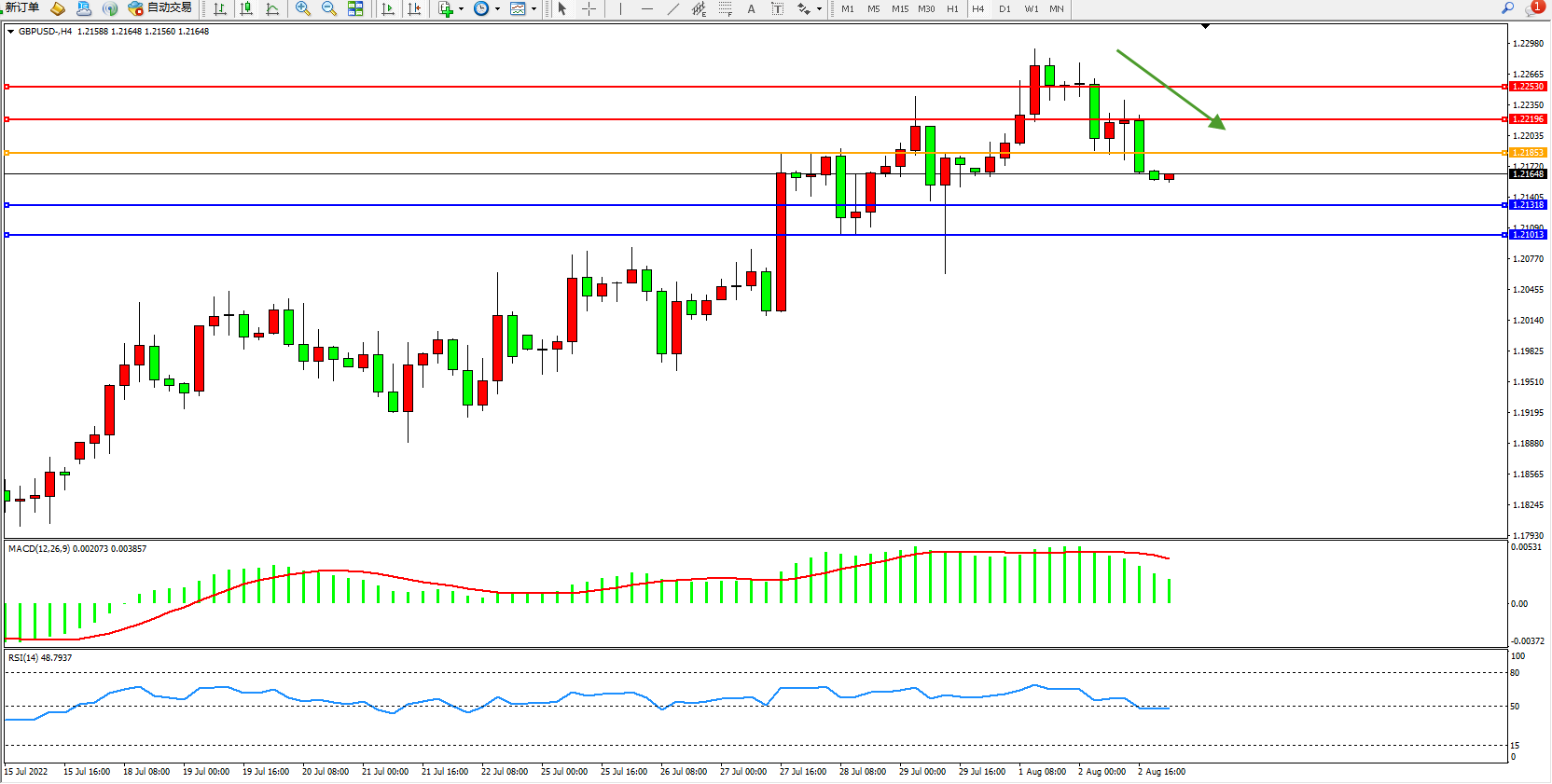 英镑美元GBPUSD ——4小时K线图显示: