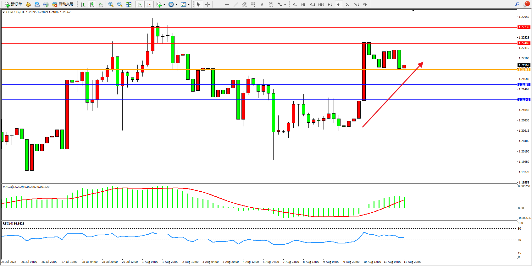 交易策略:1.21863上方看涨,目标1.22406、1.22736
