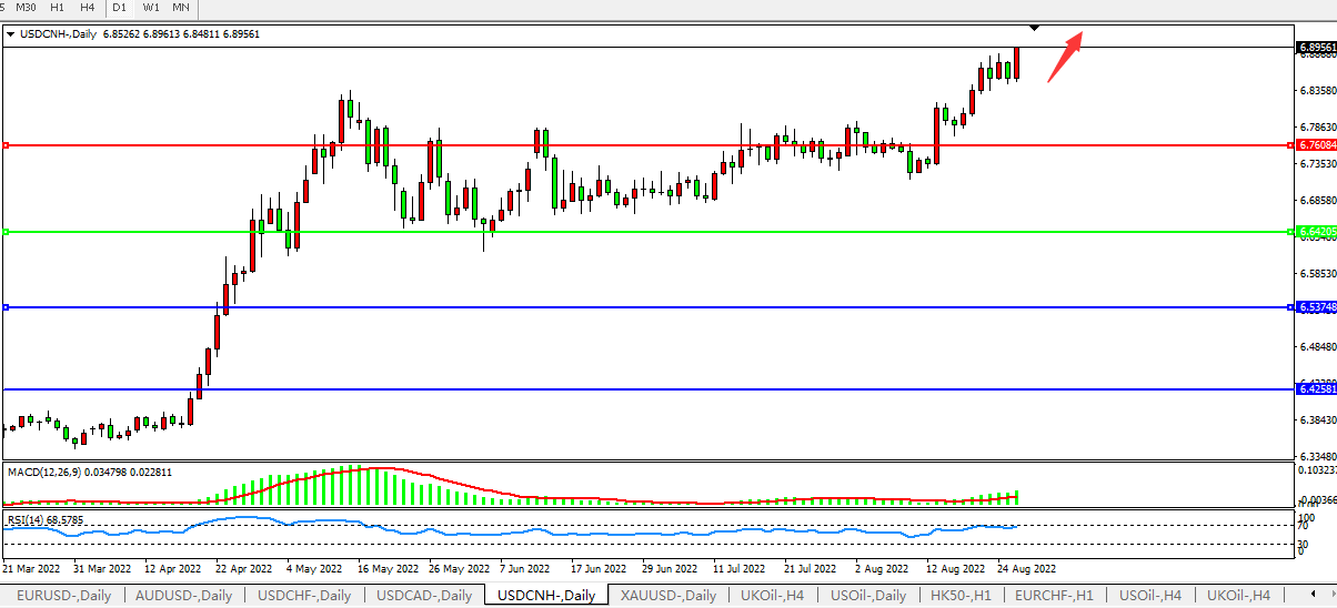 阻力位:6.7600 6.8870 7.0000
