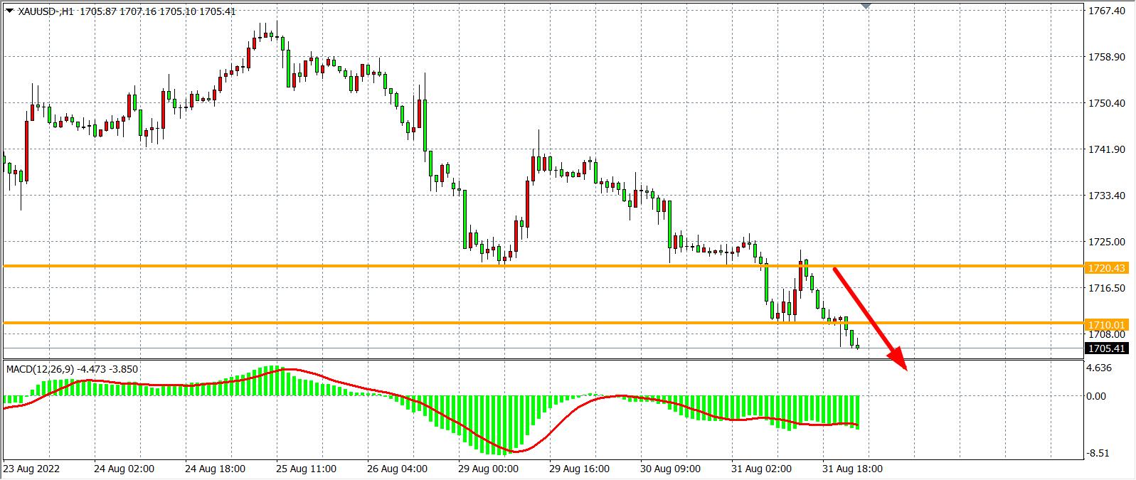 周三(8月31日)欧美官员再度放鹰,美联储梅斯特表示,抗击通胀将是一场漫长的斗争。梅斯特重同时申她倾向于美联储在2023年初将联邦基金利率提高到4%以上,欧洲央行管委霍尔茨曼表示,在下周召开的9月会议上,欧洲央行至少会加息50个基点。美债收益率再创新高,现货黄金震荡下行,两度跌破1710关口,最终收跌0.72%