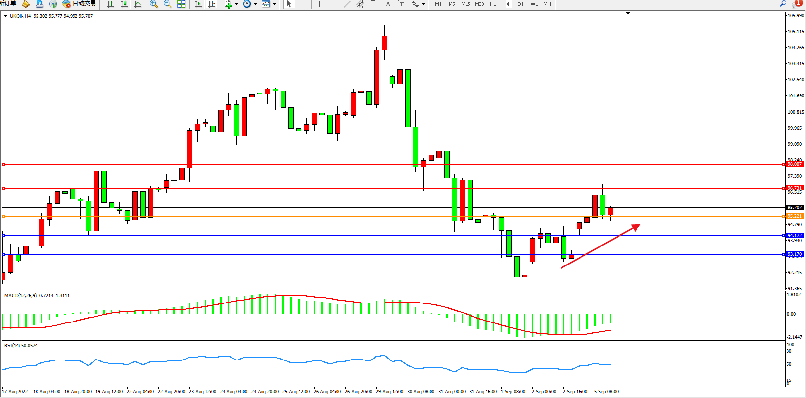 布油UKOil——4小时K线图显示: