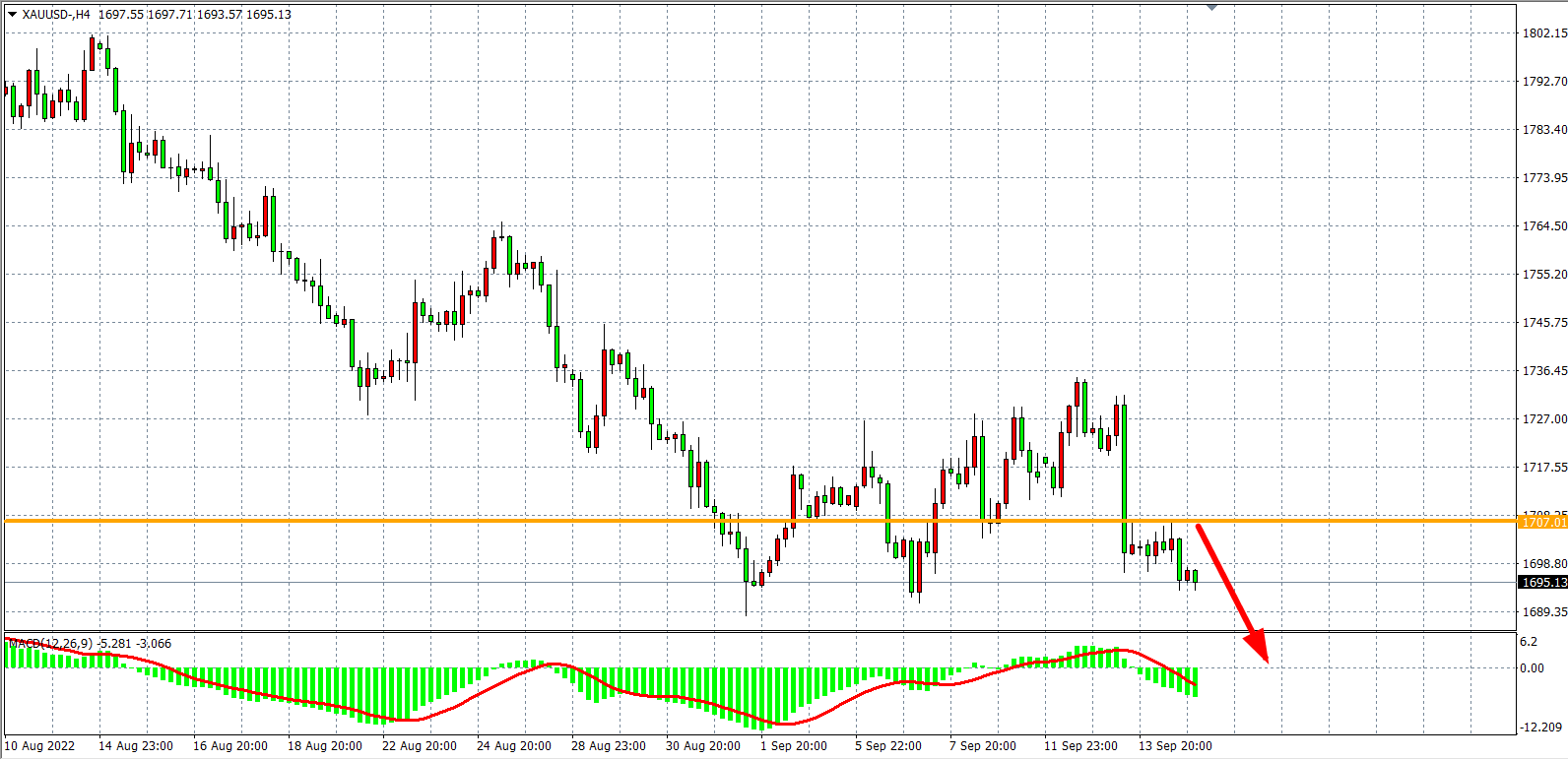 黄金:阻力下移1707