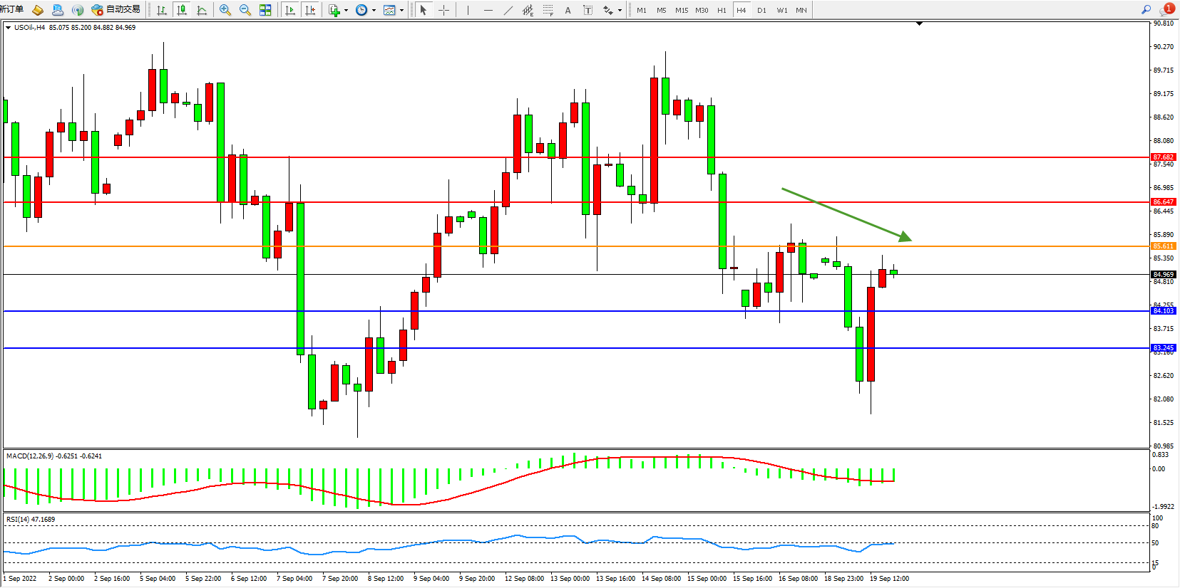 原油USOil——4小时K线图显示: