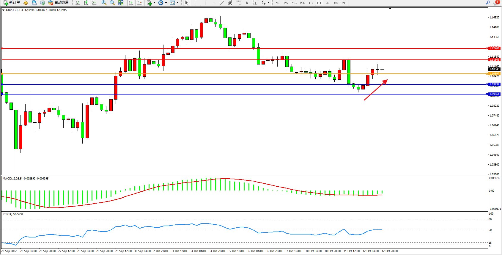 英镑美元GBPUSD ——4小时K线图显示: