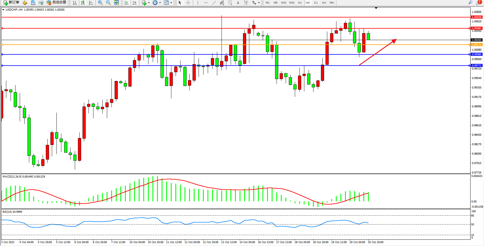 美元瑞郎USDCHF——4小时K线图显示: