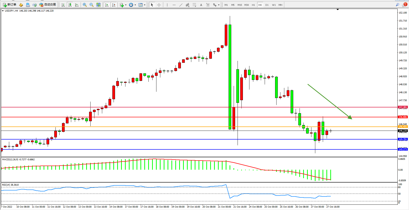 美元兑日圆维持146.220附近震荡,日本官员仍对是否公开证实将进行第二次干预以捍卫日元守口如瓶。日兑美元大幅走强,至约146左右。上周,日圆兑美元下破了150日水平,创下1990年8月以来的最低水平。