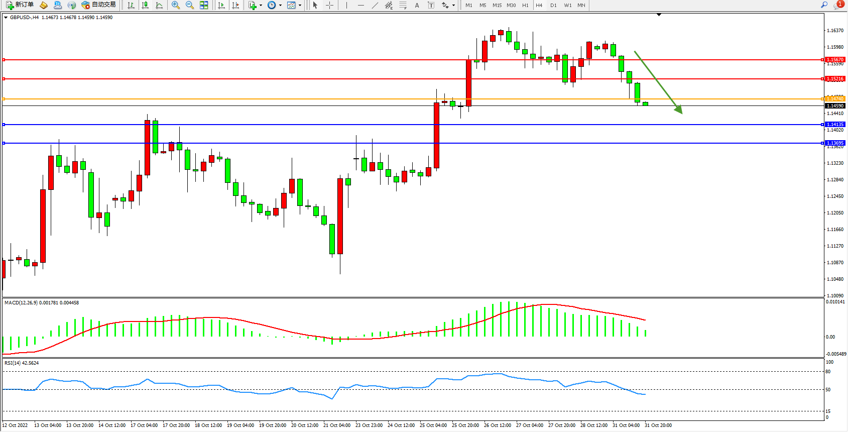 英镑美元GBPUSD ——4小时K线图显示: