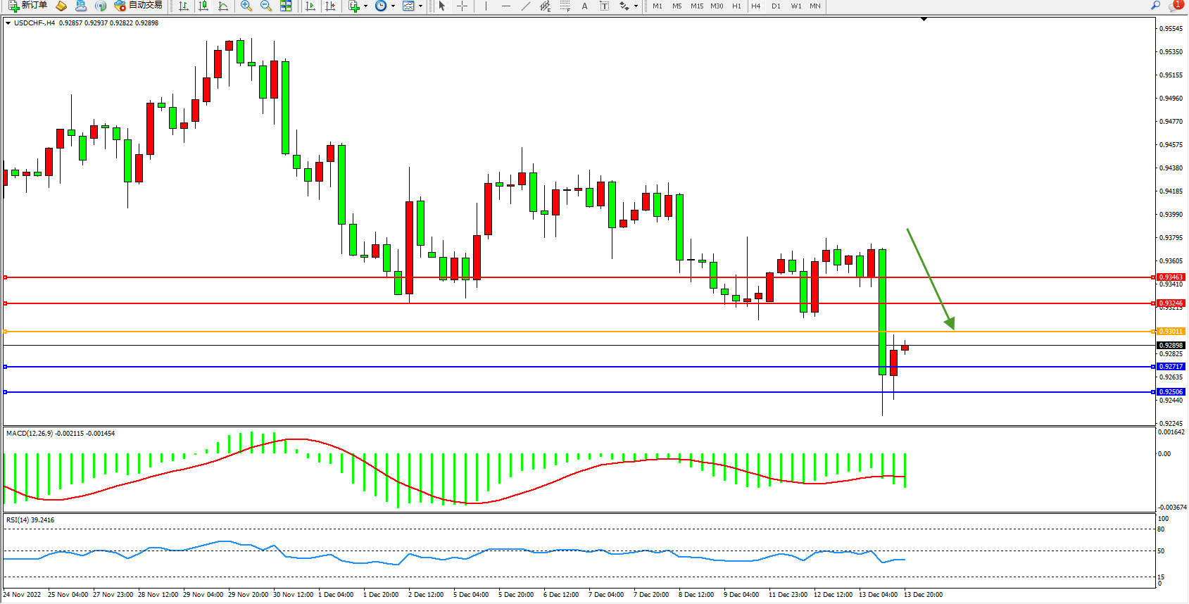 美元瑞郎USDCHF——4小时K线图显示:
